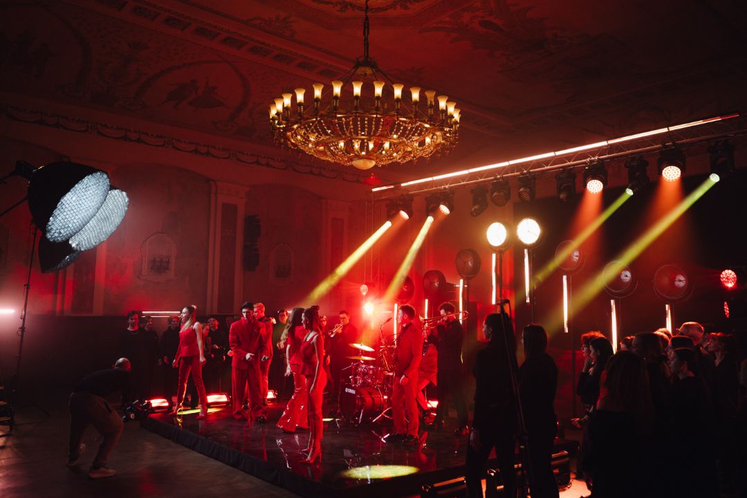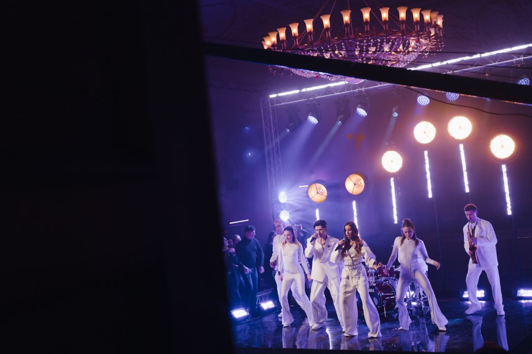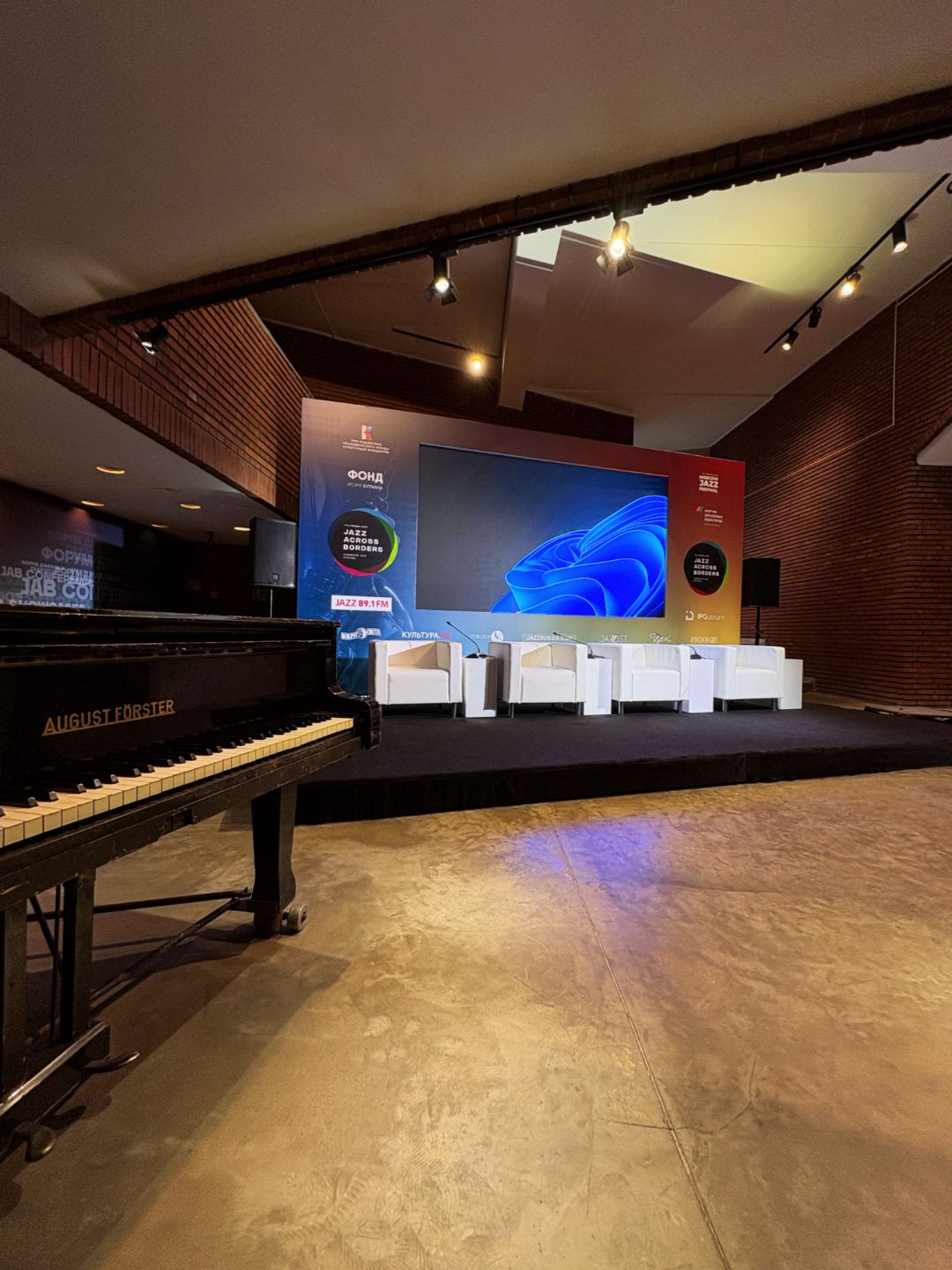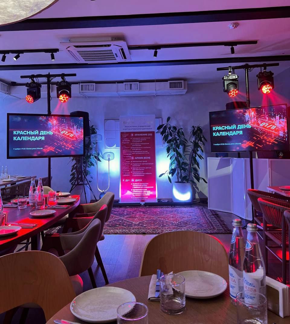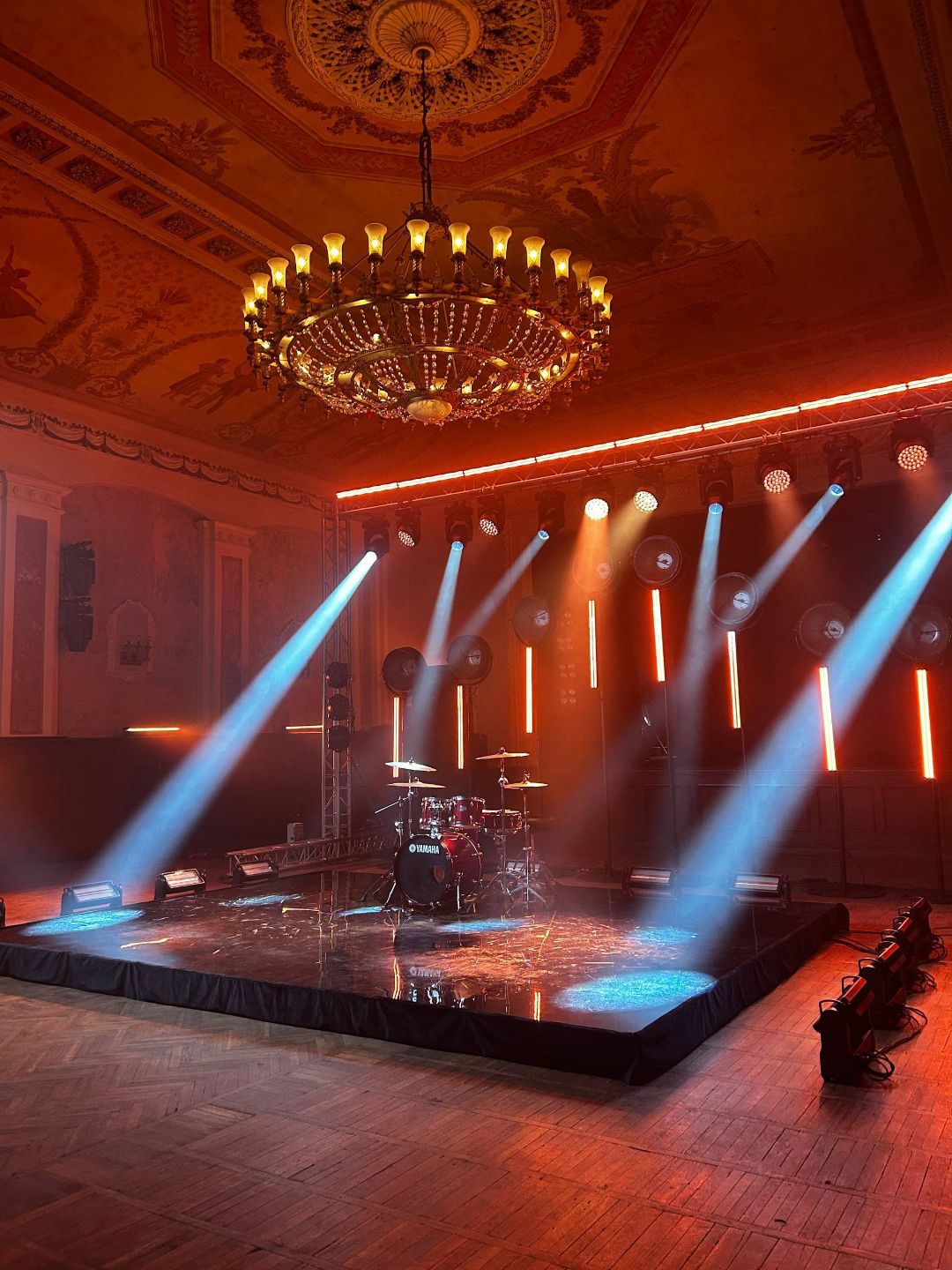 - Сцена 5х4 из сценических подиумов, покрытая глянцевым полистиролом + раус